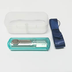 ...Práctico Timbre Tipo sello de bolsillo, manual, con tampón incluído, el cual puede ser recargado con la tinta para sellos de goma Automatik o en el caso de recambio sólo puede ser efectuado por el fabricante.